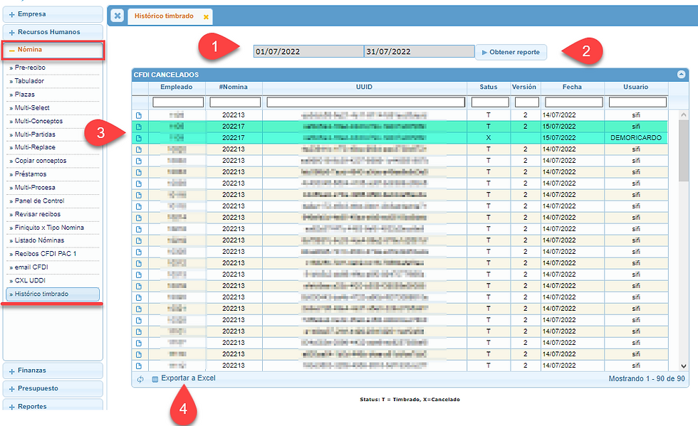 Podrás obtener el histórico de tus CFDI timbrados y cancelados mensuales para comparar con el listado que arroja el SAT y hacer la comparación, u obtener un reporte por periodo seleccionado dependiendo las necesidades.