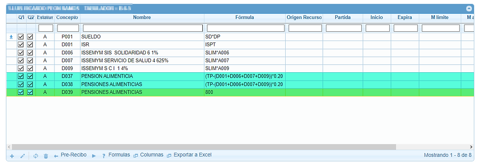 En dado caso que tengamos pensionadas que no cobraron o no se les pago la quincena pasada aquí es donde nos aparecerán y seleccionándolas aparecerán en nuestros recibos para firma de la quincena corriente.